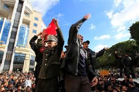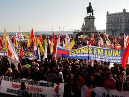 Milhares de pessoas desfilam pelas ruas que ligam o Rossio e a Praça da Figueira ao Terreiro do Paço, gritando palavras de ordem e buzina...