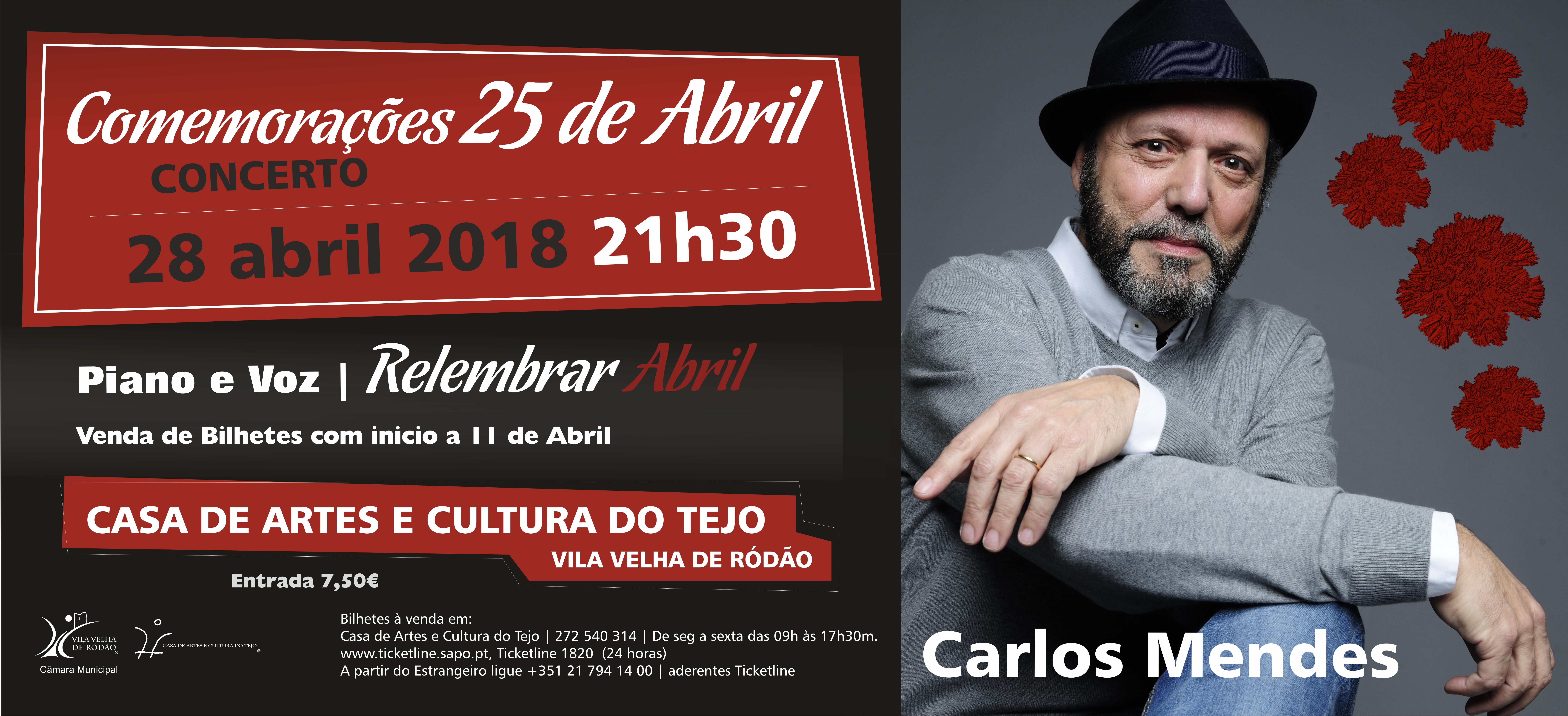 No dia 28 de abril, a Casa de Artes e Cultura do Tejo, em Vila Velha de Ródão, recebe o concerto “Relembrar Abril” de Carlos Mendes. O...