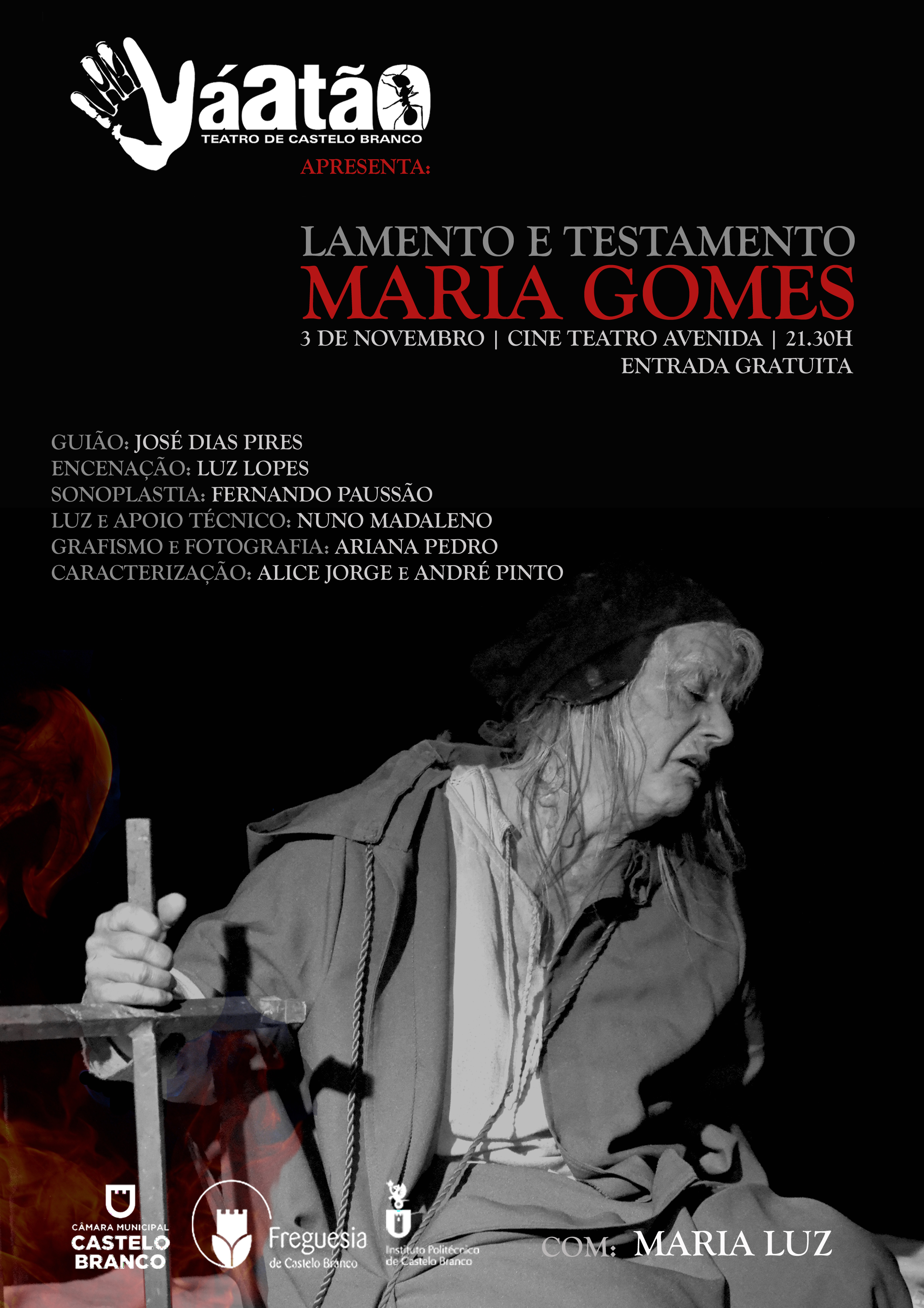 O Váatão – Teatro de Castelo Branco apresenta esta sexta-feira, às 21:30 no Cine Teatro Avenida, "Lamento e Testamento de Maria Gomes"...