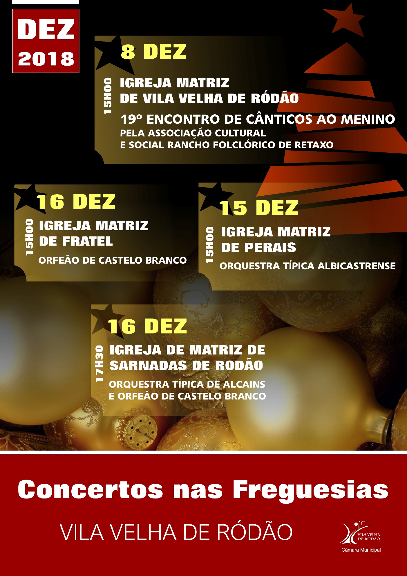 Entre 8 e 16 de dezembro, o Município de Vila Velha de Ródão promove concertos de Natal nas igrejas das sedes de freguesias do concelh...